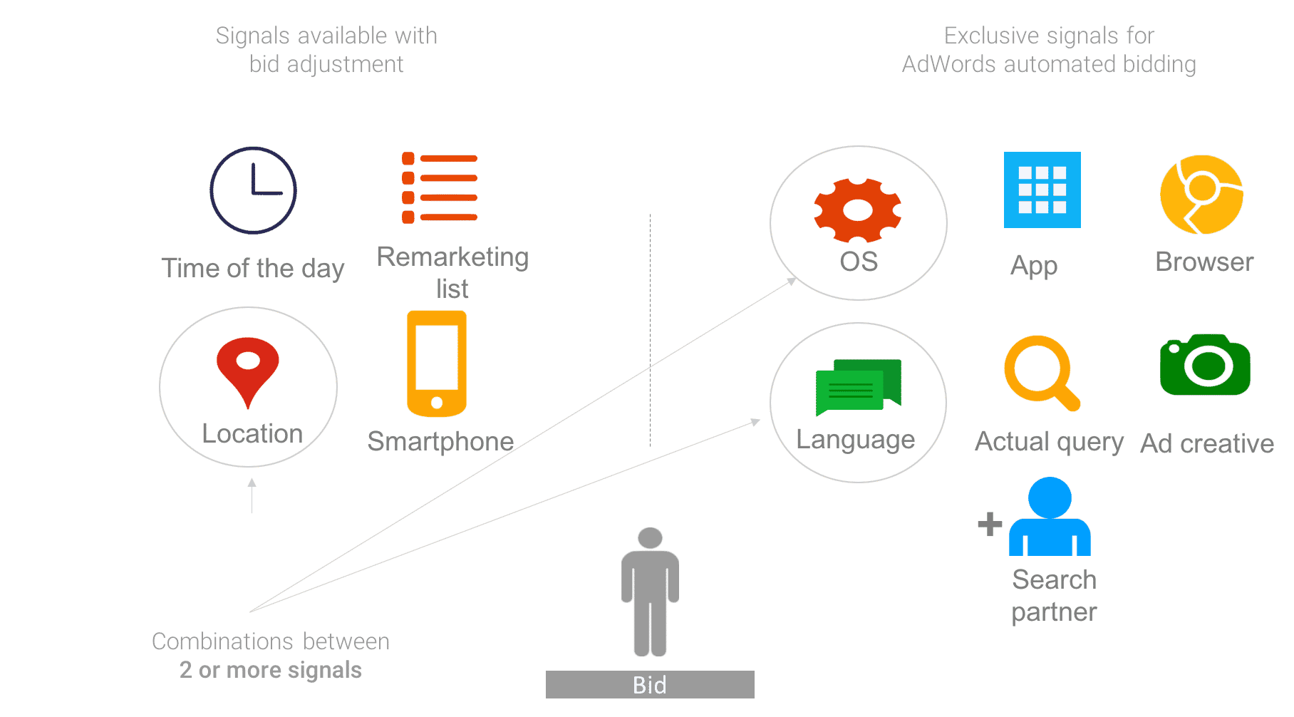 Different signals Google Ads uses to determine bidding with Smart Bidding strategies.*Source: ThinkWithGoogle*